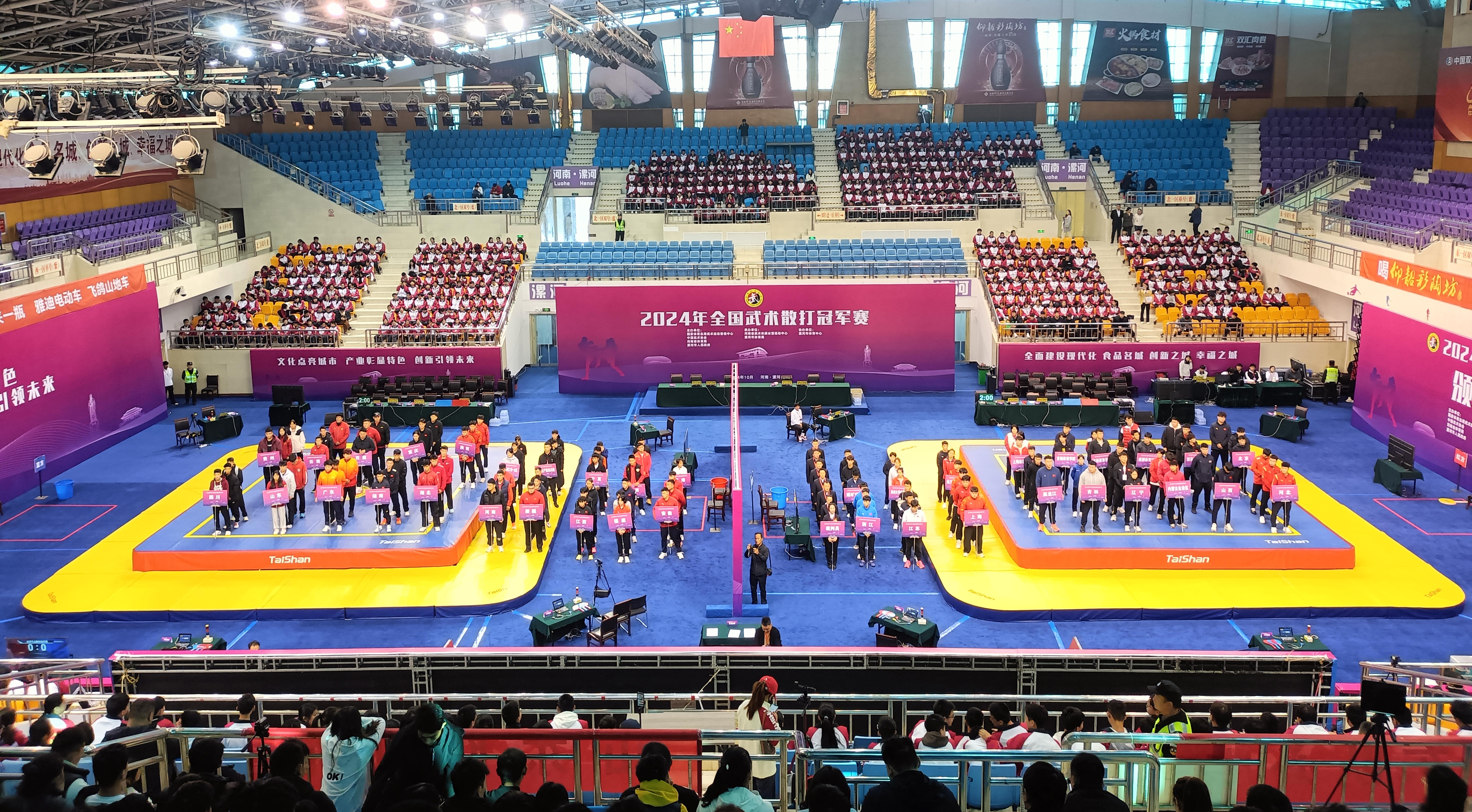 10月24日,全国武术散打冠军赛在河南省漯河体育中心体育馆开打,来自国内顶级40支代表队的近400名武术散打健儿汇聚漯河,给观众带来一场展现武术精髓的盛宴。jn江南体育成为本届赛事场地器材、训练器材供应商与服务商。