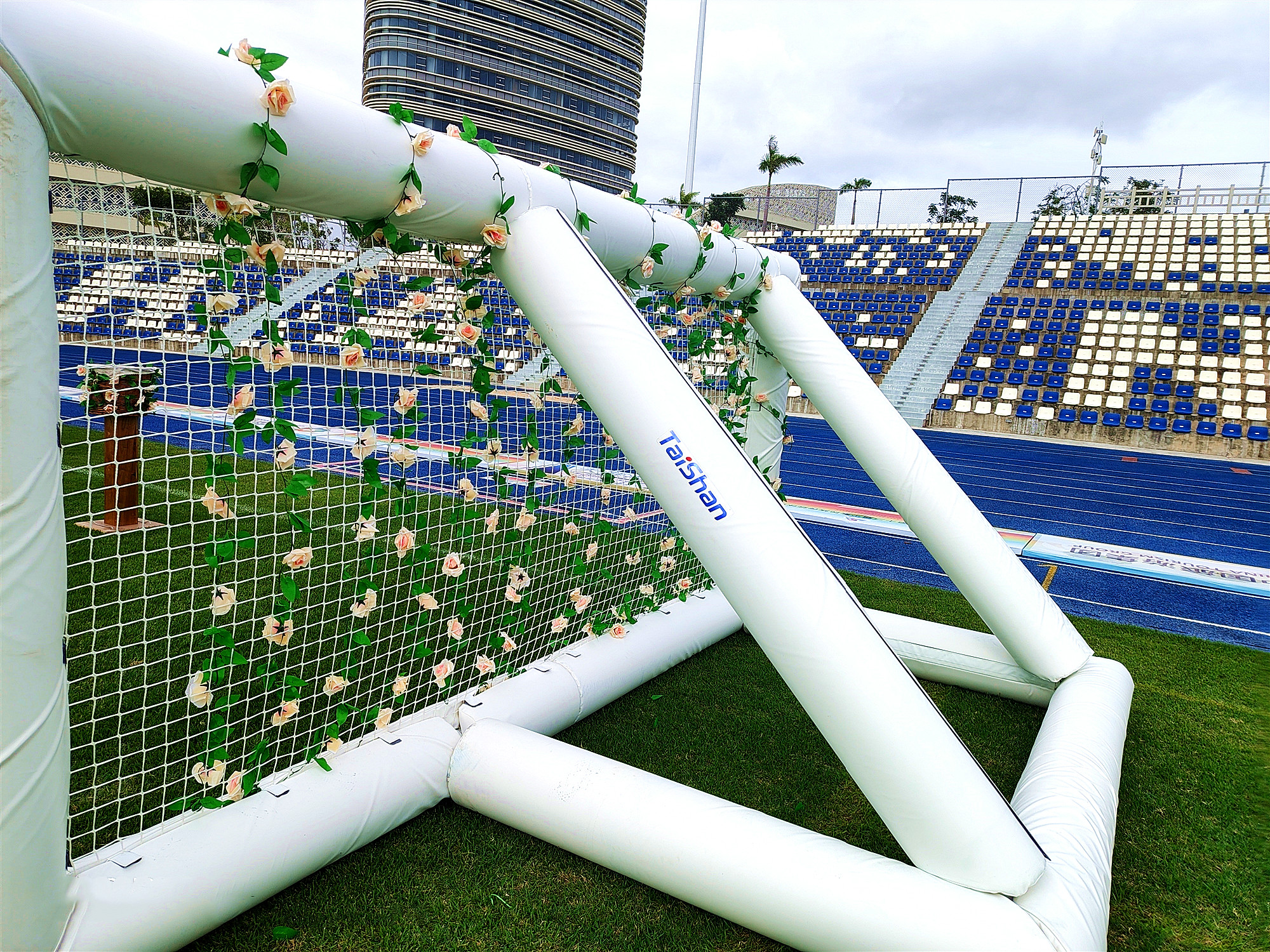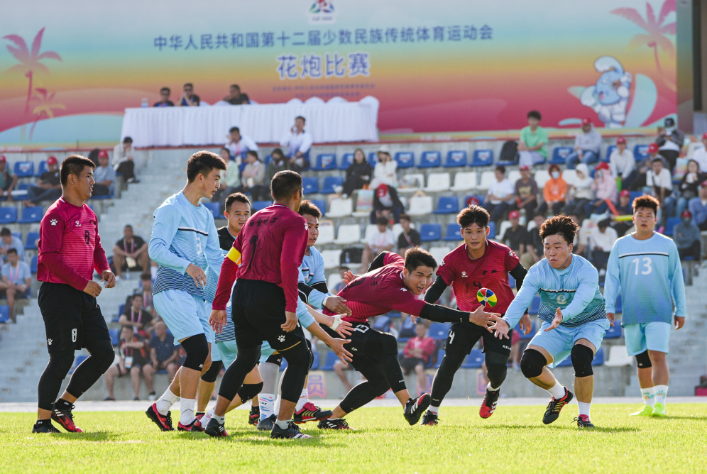 花炮原称“抢花炮”,是流行于广西、贵州、云南、湖南等地的一项民间传统体育活动,已有500多年的历史。本届赛事上,端庄、大气、靓丽的花炮门器材完全由jn江南体育自主设计安装,为赛事举办增添了浓厚氛围。