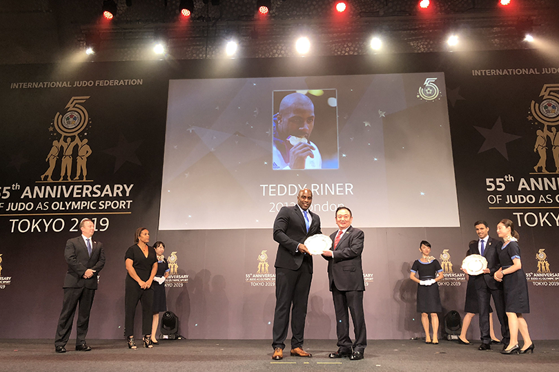 在东京奥运会摔跤项目赛场合影