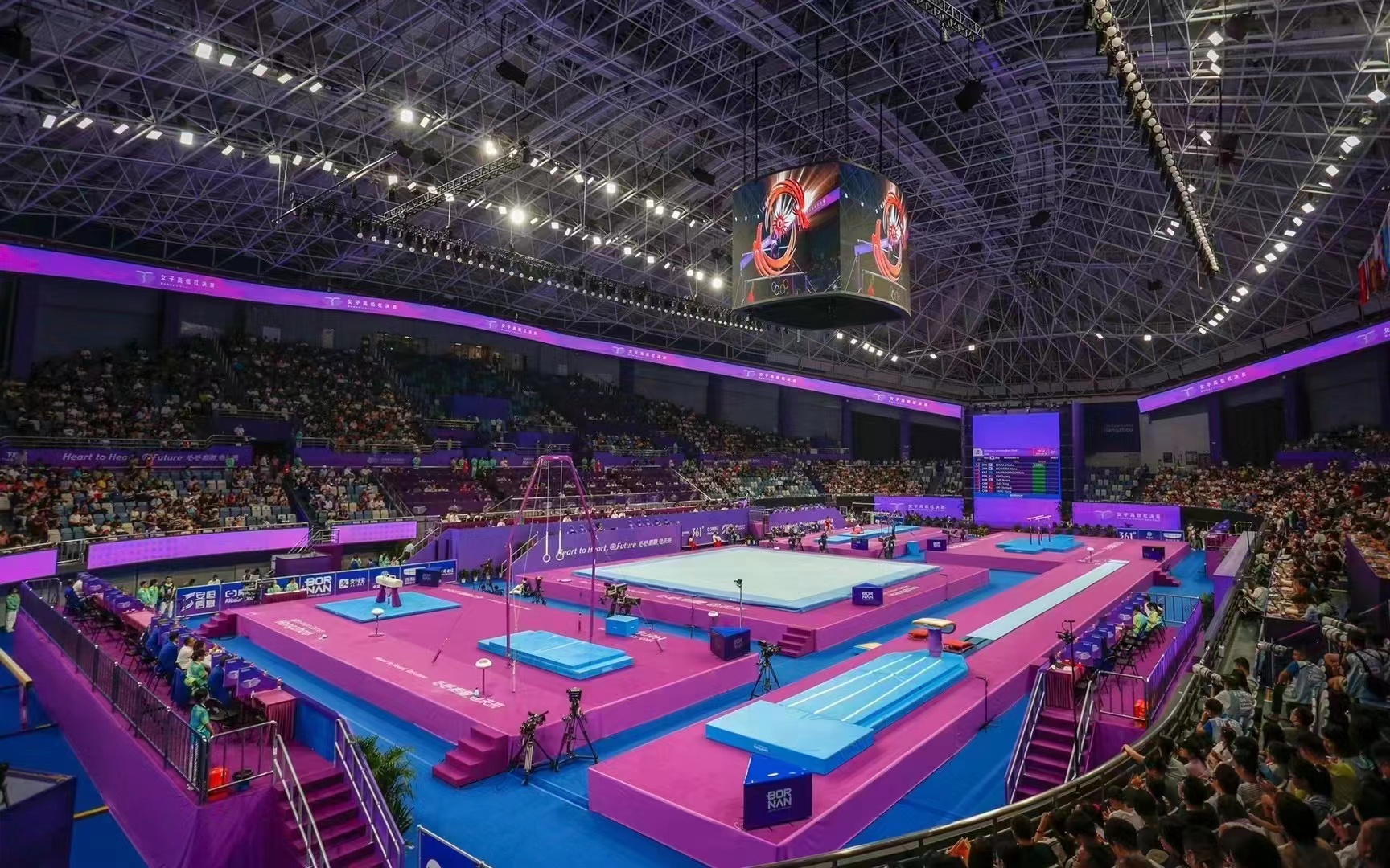 本届杭州亚运会,jn江南体育升级赛事服务模式,科学掌控整个赛事、大数据分析比赛流程、实现快速转场、加快场地设计布局、提高对器材的检测效率,运动员训练场地、热身场地器材的科学调试及更换、男子项目和女子项目器材无缝切换等。